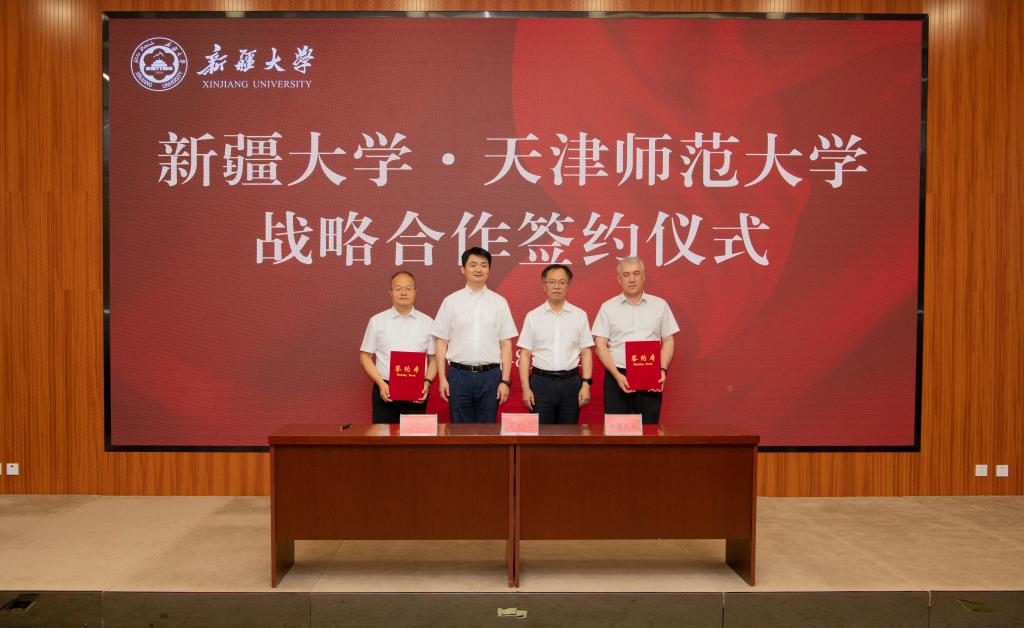 巩金龙对新疆大学近年来各项事业发展取得的成绩表示祝贺。他指出,推进高等教育高质量发展是促进新疆稳定发展,增强新疆“向西开放桥头堡”作用发挥的关键之举。战略合作协议的签署,将有力助推两校高质量内涵式发展,以东西部区域创新协同更好服务西部振兴、文化润疆战略。学校将汇聚优质资源,优化合作机制,在铸牢中华民族共同体意识、师资队伍建设、国际化办学、产教融合、咨政建言、基础教育等领域开展全方位合作,打造东西部高校合作的新标杆。