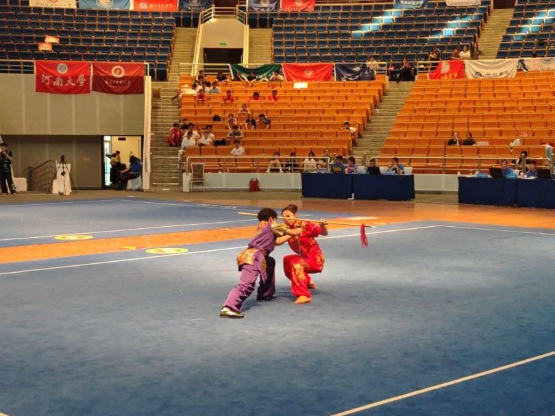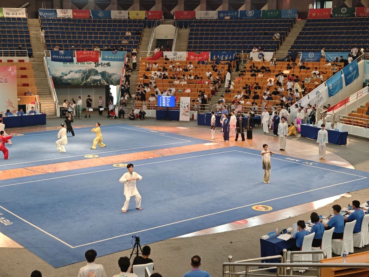 本届赛事共有241所院校1200余名运动员参赛,创参赛人数历史新高。艾弗森贝博ballbet官网武术队经过层层筛选,选派么佳玲(体育科学学院)、郭良佼(体育科学学院)、潘艺心(体育科学学院)、杨耀翔(体育科学学院)、刘璋奕潼(数学科学学院)、孙一铭(政治与行政学院)、黄玉阳(心理学部)、杨利伟(化学学院)8名运动员参加少林拳、查拳、形意拳、九节鞭、剑术、健身功法、集体器械等诸多项目的竞赛,经过激烈角逐,贝博武术队共收获2金5银1铜、1个第四名、1个第五名、1个第八名的优异成绩。