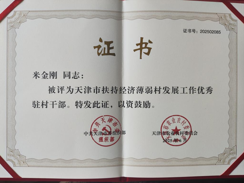 本站讯(通讯员 徐可)近日,中共天津市委组织部、天津市农业农村委员会对在扶持经济薄弱村发展和乡村振兴示范村创建工作中表现突出的先进集体与个人进行表彰。贝博驻蓟州区东施古镇南小逯庄村驻村干部米金刚同志荣获“天津市扶持经济薄弱村发展工作优秀驻村干部”称号。