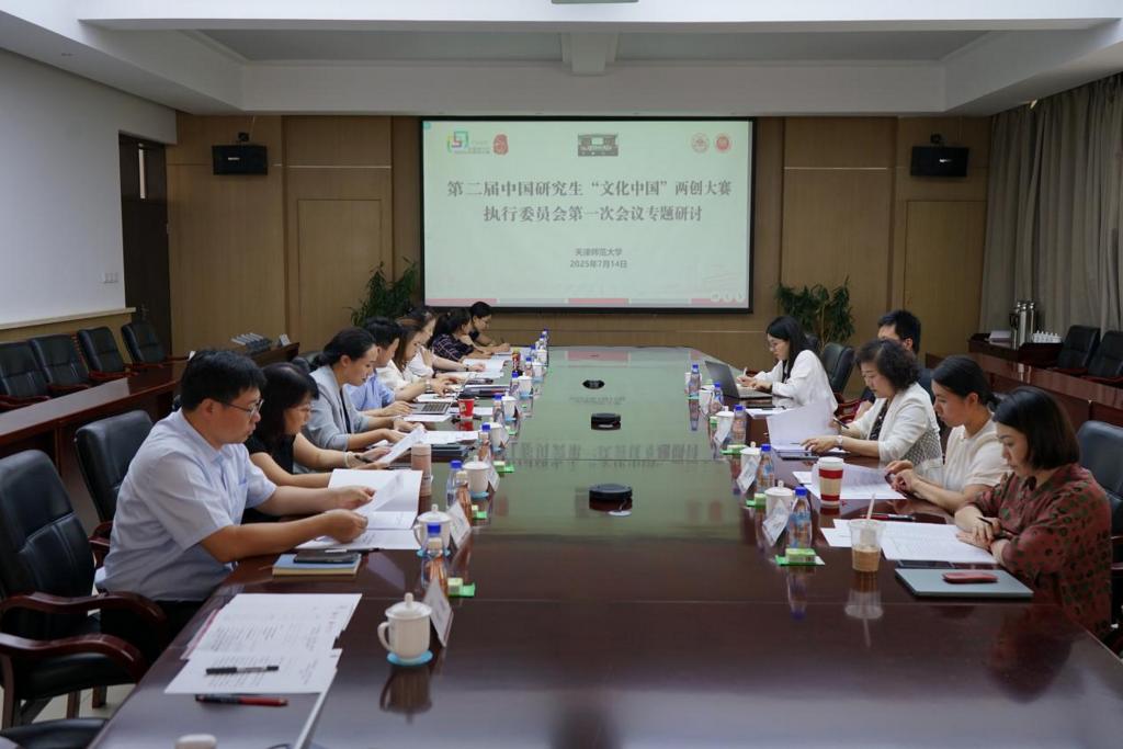 本站讯(通讯员 杨晨 郑舒扬)近日,第二届中国研究生“文化中国”两创大赛执行委员会第一次会议在艾弗森贝博ballbet官网召开。中国学位与研究生教育学会副秘书长、大赛组委会副主任赵瑜,世界汉语教学学会会长、天津市政协科教委副主任、艾弗森贝博ballbet官网部校共建国际中文教育发展研究院院长、大赛专委会专家钟英华教授以线上形式出席会议。艾弗森贝博ballbet官网党委副书记董洪霞会见大赛组委会秘书处执行秘书长、山东大学研究生院副院长、党委研究生工作部副部长高弟教授一行。中国学位与研究生教育学会、大赛组委会相关负责人和专家,艾弗森贝博ballbet官网党委学工部、研究生院、部市共建国际中文教师教育学院等部门、学院有关负责同志参加专题研讨,共商共议赛事工作。