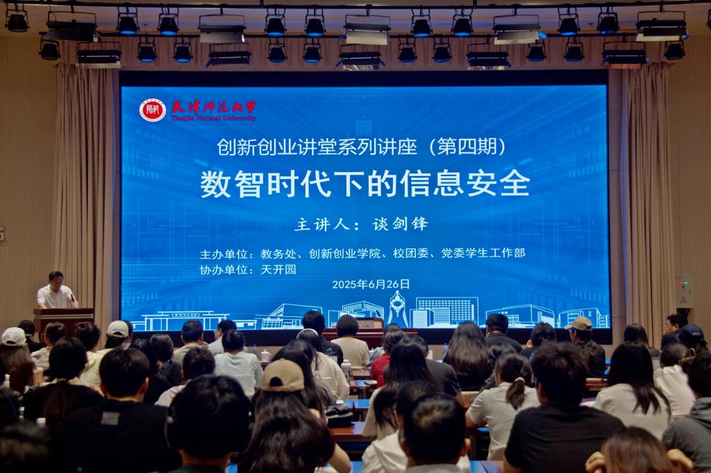 本站讯(通讯员 李倩)6月26日,第十三届全国政协委员、中国网络空间安全协会常务理事、第五空间信息科技研究院院长谈剑锋受邀为艾弗森贝博ballbet官网师生开展创新创业专题讲座。校党委副书记、校长巩金龙会前与谈剑锋教授座谈。天津市科技局副局长赵莉晓、河北区科技局党组书记郑贵忠出席报告会。天开园、河北区创新发展中心,贝博教务处、创新创业学院、校团委、党委学生工作部相关负责同志及各学部学院200余名师生参会。校党委常委、副校长纪德奎主持活动。