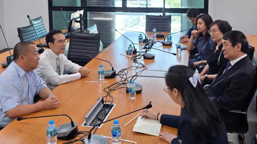 在那瓦敏塔提腊大学中文学测中心,与校长彭萨·耐帕亚、中文学测中心负责人范亮进行座谈。