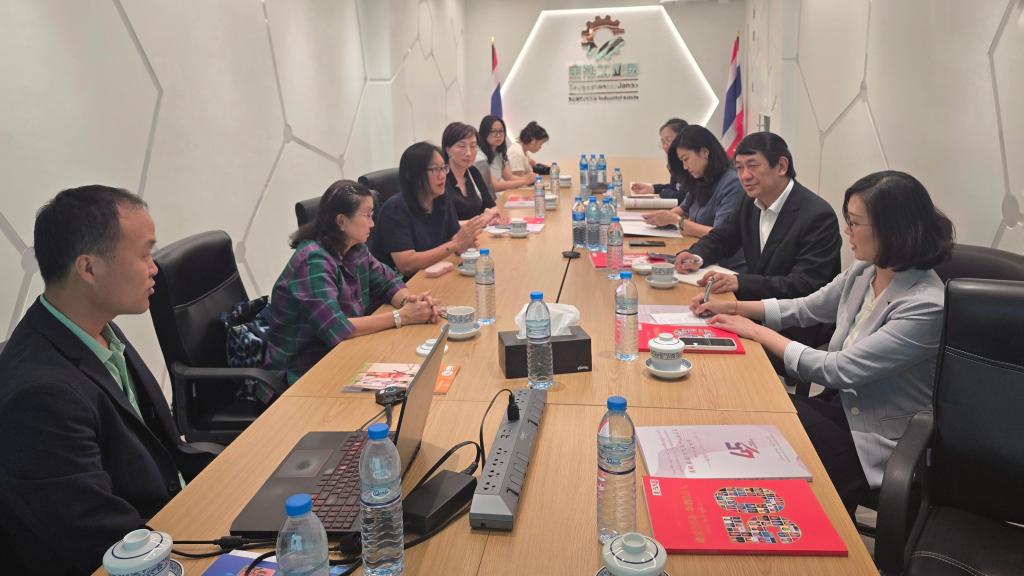 在泰国华文教师公会,公会主席罗铁英,副主席黄淑环、副主席兼总干事郭晓辉围绕泰国本土师资培养、从业资格培训、学术交流合作,详细介绍了泰国华文教育发展历程及五年规划目标。