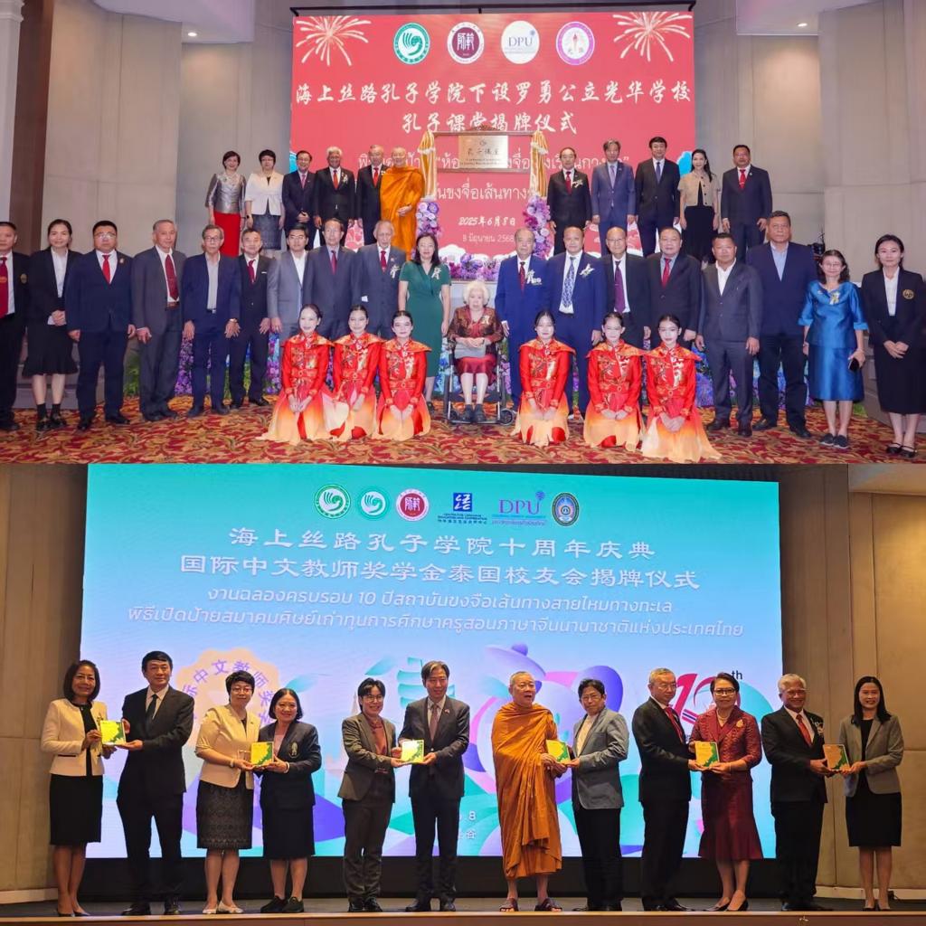 此外,与会嘉宾还共同为海上丝路孔子学院下设罗勇公立光华学校孔子课堂揭牌并向十二家中泰合作单位颁发致谢牌。