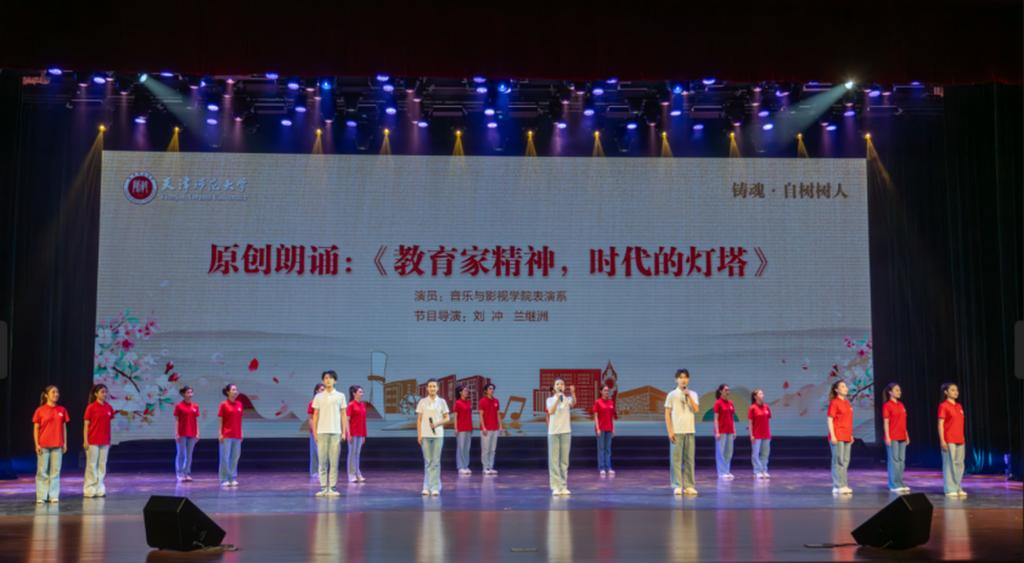 活动在主题视频《致敬!师者如光》中拉开帷幕,分为“铸魂·自树树人”“追梦·强国有我”“传薪·初心如炬”三个篇章。音乐与影视学院各专业系300余名师生代表历时1个月,精心策划、选题、编排展演节目,通过歌曲、舞蹈、朗诵等形式倾情演绎,为全场观众带来一场视听交融的校园文化盛宴,更呈现了一堂“教育强国新程 师大青年有为”的主题“大思政课”。