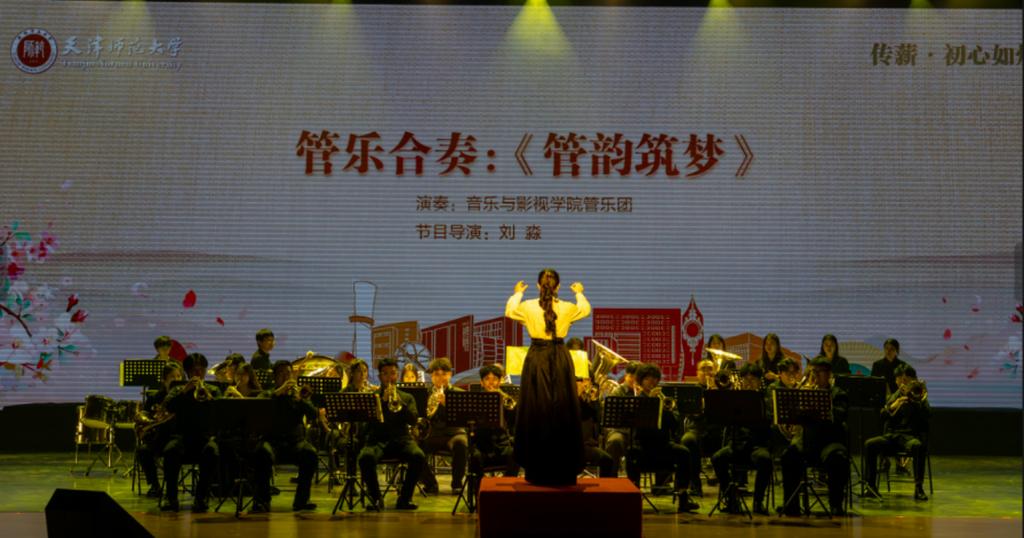 薪火相承,初心如磐。管乐合奏《管韵筑梦》以激昂的旋律共同奏响师者领航的梦想乐章;“静静的深夜群星在闪耀,老师的房间彻夜明亮。”一首《每当我走过老师的窗前》唱响了对师者无尽的感恩与敬仰,歌曲《不忘初心》更是将整场音乐会推向高潮。活动在全场齐声高唱《我们走在大路上》中圆满落幕。