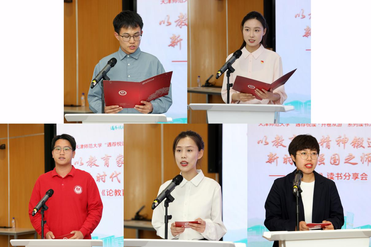“全国高校黄大年式教师团队”指导学生、心理学部2021级博士研究生谢岩枫,“弘道修身”教育家精神宣讲团成员、政治与行政学院2024级硕士研究生任璐瑶动情朗读《回忆沈德立先生》《回忆徐大同先生》选段,带领师生感悟教育家精神的深刻内涵。“百万学子回延安 延安精神进校园”天津市大学生电商直播创业就业大赛参与者、经济学院2023级本科生沈嘉星,贝博第24届研究生支教团成员、教育学部2023级硕士研究生郝一秀,肯尼亚内罗毕大学孔子学院国际中文教师志愿者、国际教育交流学院2021级硕士研究生樊国景,结合《论教育》中《努力成为堪当强国建设、民族复兴大任的栋梁之才》篇章内容,分享自身以实际行动诠释“担当·知行合一”的成长经历,激励青年学子立报国强国大志向,做挺膺担当奋斗者。