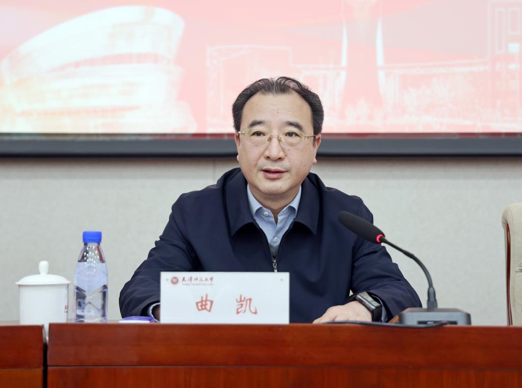 曲凯围绕“为什么建”“怎么去建”“如何有为”三个方面就学校一流学科建设作部署。他指出,建设一流学科是全面贯彻党中央决策部署的必然选择、服务天津经济社会高质量发展的应有之义、加快推动一流师范大学建设的迫切需要。他强调,面对学校发展中的矛盾和挑战,要辩证处理好“破与立”“学术与服务”“引进来与走出去”“统筹推进与精准发力”的关系,牢牢掌握正确的工作方法,通过“赛马机制”全面激活“冲一流”的核心动力,切实提升“冲一流”的综合竞争力。曲凯要求全校上下必须加强协同联动、同题共答,树立守土尽责的集体意识、鼓起直面挑战的顽强勇气、发扬公而忘私的奉献精神,以“时不我待、只争朝夕”的紧迫感握拳出击,集全校之力向一流学科发起冲刺。