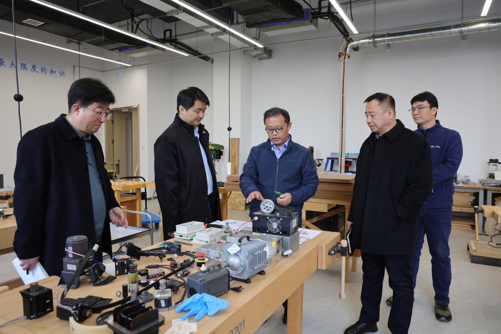 在教师教育国家级实验教学示范中心,巩金龙详细考察师范生教学技能训练、创客(科普)教育、教育技术、教法等实验室,了解实验教学设备的使用情况、实验课程的设计与实施以及创新创业教育的开展情况,询问师范生实践能力培养成效,对中心聚焦师范生跨学科素养培养取得的进展给予肯定。巩金龙指出,师范教育是学校的立校之本,要充分发挥国家级平台的示范引领作用,进一步完善实验教学体系顶层设计,面向科技创新强化师范生实践能力培养,为新时代基础教育高质量发展提供强有力的人才支撑。