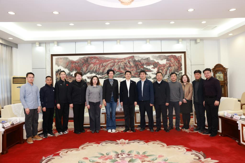 本站讯(通讯员 苏小龙 陈朋伟)2月17日,天津市体育局副局长李珊一行来校交流调研。校党委副书记、校长巩金龙,校党委常委、副校长佟德志、纪德奎出席交流活动。市体育局人事处处长孙津,市体育运动学校校长佟文、副校长魏秋月参加交流活动。