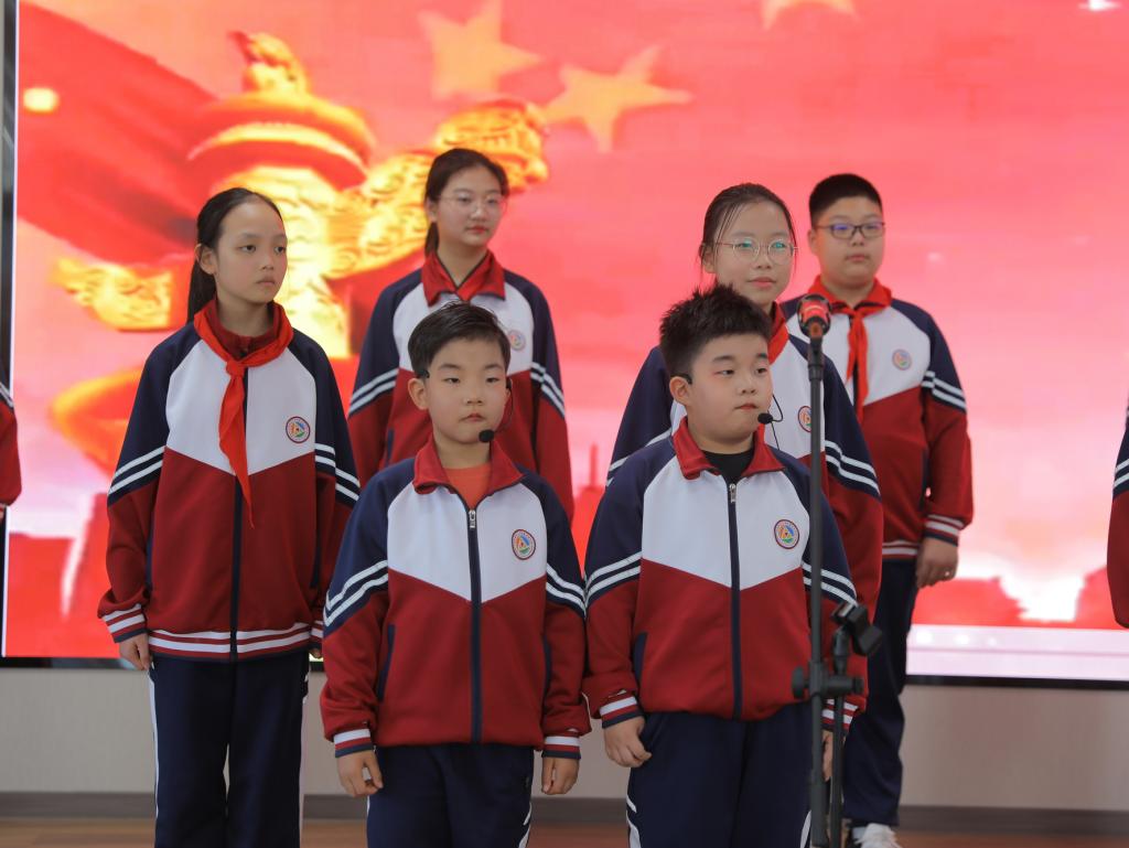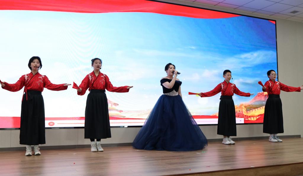 音乐教师带领四位七年级学生为大家带来歌曲《大中国》。该节目是社团课的精彩展示,通过音乐的力量,让学生们在演唱的同时,感受到歌曲所传达的爱国情感和民族自豪感,同时还激发观众对祖国的热爱与归属感,让爱国之情在每一个人心中澎湃激荡。