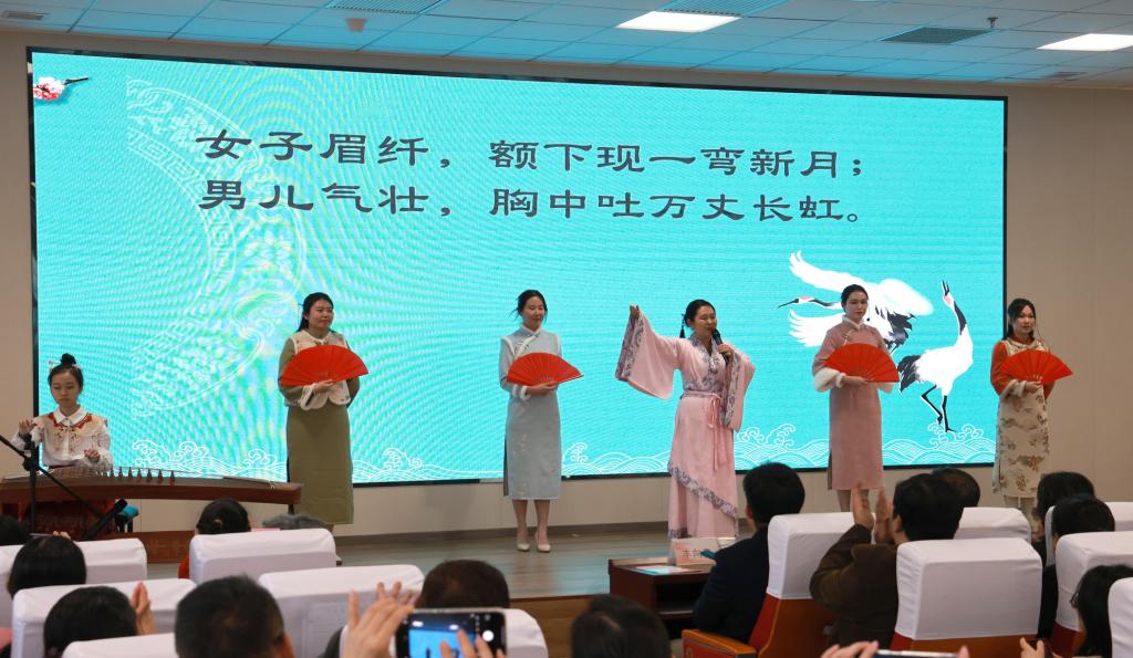 《声律启蒙》由交流教师与四位青年教师携手七年级学生共同精彩演绎。这首歌的歌词源自古代儿童的启蒙读物,通过天文地理、花鸟鱼虫等丰富元素的对应,让学生感受汉语的对仗之妙、音韵之美。今天,他们用歌声唱出琅琅上口的词句,用古筝弹奏出悠扬动听的旋律,带大家共同体验古文与韵律的完美融合,一起传承中华优秀传统文化,让古韵在校园中悠扬回荡。