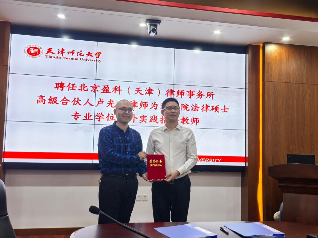 仪式上,法学院党委书记代表学院接受了卢光荣律师捐赠的专项基金,法学院院长与卢光荣签署了捐赠协议,法学院副院长为卢光荣颁发法律硕士专业学位实践导师聘书。