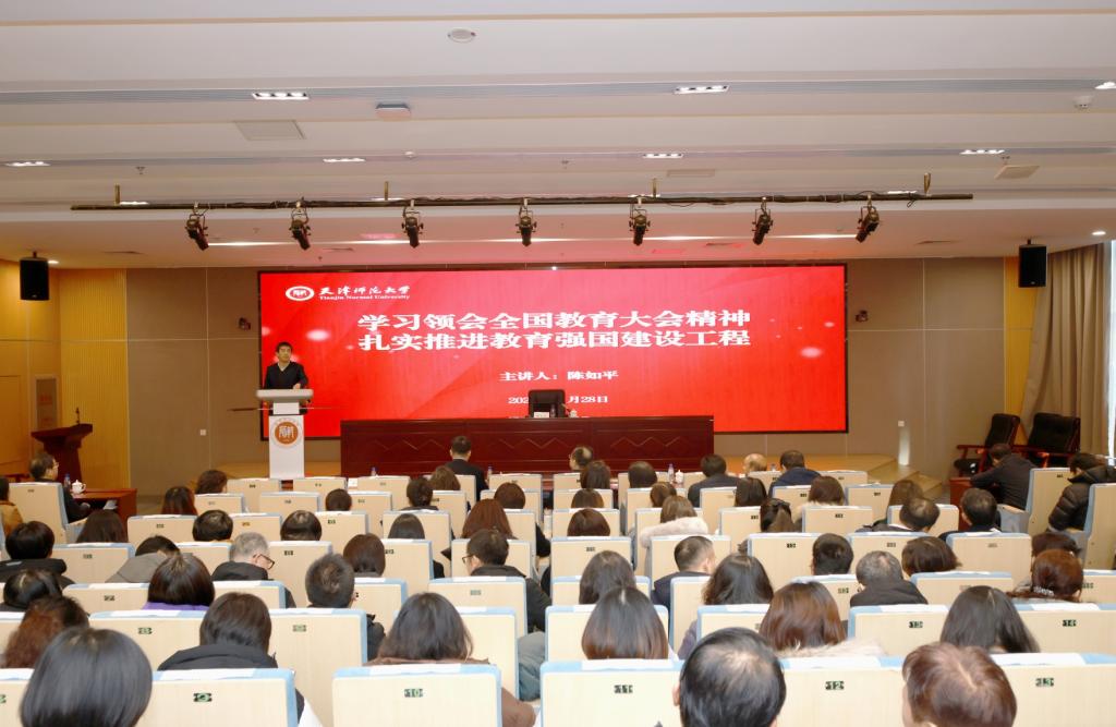校党委常委、副校长佟德志在主持辅导报告会时强调,广大党员干部要结合学校实际,将大会精神、文件内涵与党的二十届三中全会精神、习近平总书记视察天津重要讲话精神、习近平总书记关于教育的系列重要论述等结合起来学习,全覆盖学习培训、全景式宣传阐释;与“教育、科技、人才”三位一体战略结合起来思考,一体推进教育发展、科技创新、人才培养;与学校实施“攻坚提质”计划,全面加快建设特色鲜明世界知名高水平师范大学的工作实际结合起来落实,回答好“强国建设,师大何为”的重大命题。