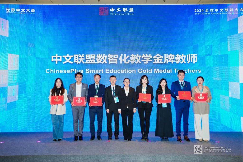 11月17日,中文联盟、世界汉语教学学会智慧教育分会、五洲汉风网络科技(北京)有限公司携手全球合作伙伴联合开展了中文联盟数智化教学“金牌”项目评选活动。经组委会评审,有50家金牌合作机构、29门金牌课程、35位金牌教师、13个金牌教学工具、21个金牌应用案例荣获金牌荣誉,贝博教师于泓珊获“中文联盟数智化教学金牌教师”荣誉称号,接受中文联盟主席王锦红颁授荣誉证书。