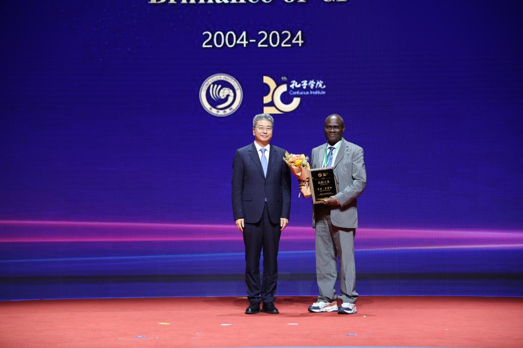 世界中文大会对马果哈先生的致谢词:“亲历孔院风华展,资源调配显担当。一生奉献情无限,中肯友谊永绵延。马果哈教授身体力行、坚持不懈推动孔子学院建设发展,让中华语言文化在肯尼亚热土上绽放出璀璨的光芒。”
