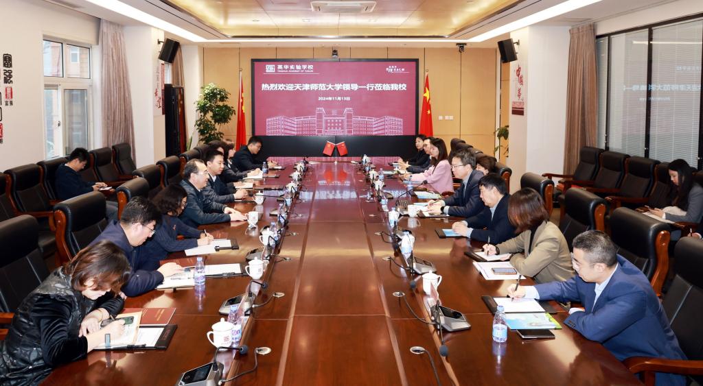 本站讯(通讯员 袁婧)11月13日上午,校党委书记曲凯率队赴天津英华实验学校交流调研并开展访企拓岗,与英华实验学校理事长、校务委员会主任、总校长林向阳进行工作会谈。英华实验学校校务委员会副主任、校长梁栋,校党总支副书记、常务副校长张涛,我校党委常委、副校长陈玳玮参加活动。