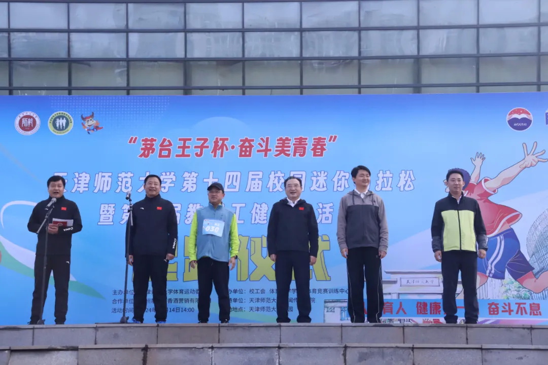 本站讯(通讯员 张云轩 吕天宇)11月14日,第十四届校园迷你马拉松暨第九届教职工健身走活动在体育馆北门广场开赛。校党委书记曲凯、校长巩金龙、派驻纪检监察组组长徐兴云、,校党委常委、副校长陈玳玮、纪德奎出席活动,纪德奎致开幕词,体育科学学院院长薛思军主持并宣布活动开始,主席台领导共同为开赛鸣枪。