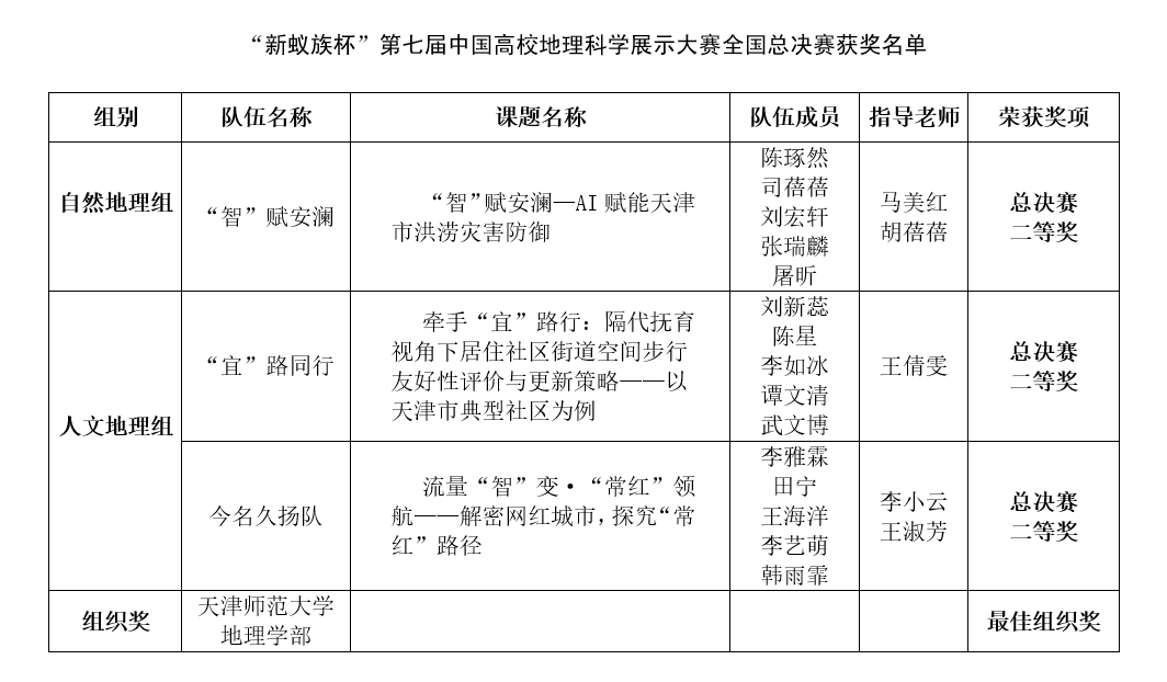 “新蚁族杯”第七届中国高校地理科学展示大赛全国总决赛获奖名单