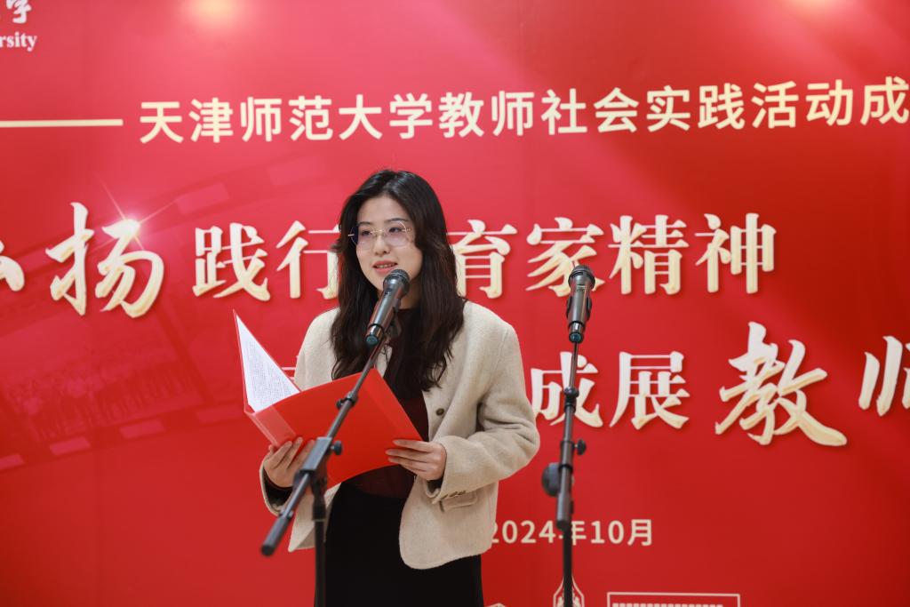 巩金龙代表学校向获奖教师表示祝贺,向长期以来躬耕教坛、奉献社会的教师们致以敬意,向默默奉献、致力于学校教师队伍建设的教职员工表示感谢。他指出,习近平总书记在全国教育大会上强调,要实施教育家精神铸魂强师行动,加强师德师风建设,提高教师培养培训质量,培养造就新时代高水平教师队伍。高水平教师社会实践正是思想引领、精神传承、教师培育的重要载体,也是建设高水平教师队伍、推动学校事业高质量发展的应有之义。他勉励全校广大教师大力弘扬教育家精神,深耕师范教育,涵养师大特色教风,为党育人、为国育才;发挥优势特长,整合资源,将高水平科研作为高质量人才培养的重要抓手,积极推进科研反哺教学;激活潜力,开拓发展新路径,面向未来教师必备能力素养,采取新方法和新模式提升教育教学水平和人才培养质量,以更加奋发有为的精神状态谱写高水平师范大学建设新篇章。