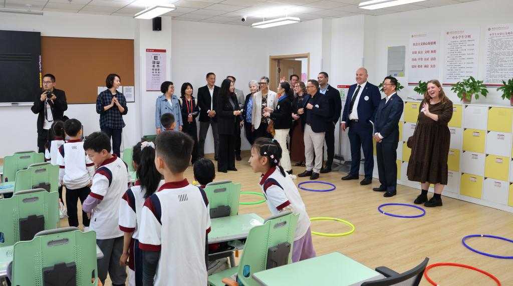 本站讯(通讯员 刘晓晨)为积极落实中国—新西兰教育联合工作组磋商机制成果,推进中新两国在基础教育领域深入合作,新西兰银蕨计划基础教育代表团应中国教育国际交流协会邀请来华访问。在津期间,代表团出席了由天津市教育委员会组织的中国(天津)—新西兰(陶朗加)基础教育交流活动,并于10月18日上午访问艾弗森贝博ballbet官网。校党委常委、副校长陈玳玮会见代表团一行,校友会、国际交流处、合作交流处、校友服务与管理中心、艾弗森贝博ballbet官网附属实验学校负责人陪同。