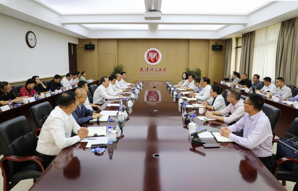 曲凯代表学校向天津理工大学一行的来访表示热烈欢迎,他谈道,理工大学和师范大学特色鲜明、优势互补,双方在跨学科交叉融合、人才培养模式创新、科技创新与成果转化、高水平师资队伍建设、国际交流合作等方面存在广阔的合作空间。希望双方加强沟通协作,建立健全长效合作机制,实化细化具体合作内容,不断推进合作交流力度、深度和广度,共同应对学校发展建设过程中的机遇挑战,共同开创两校高质量发展新局面,携手为教育强国建设作出新的更大贡献。