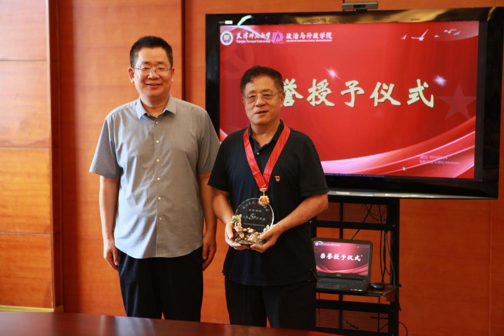 现场,学院党委书记为高建颁发了“光荣在党50年”纪念章,院长为高建颁发了“从教50年”特别贡献纪念牌。