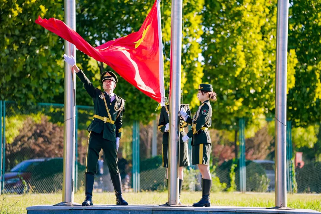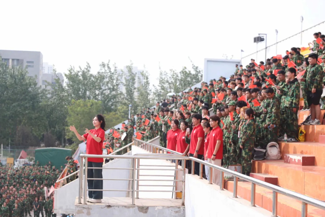 雄壮嘹亮的《强军战歌》响起,整场汇报大会被推向了高潮。全场齐声高唱,爱国情怀在歌声中激情迸发,青年学生用汗水与拼搏书写了属于自己的荣誉篇章,向新中国成立75周年献上青春礼赞。