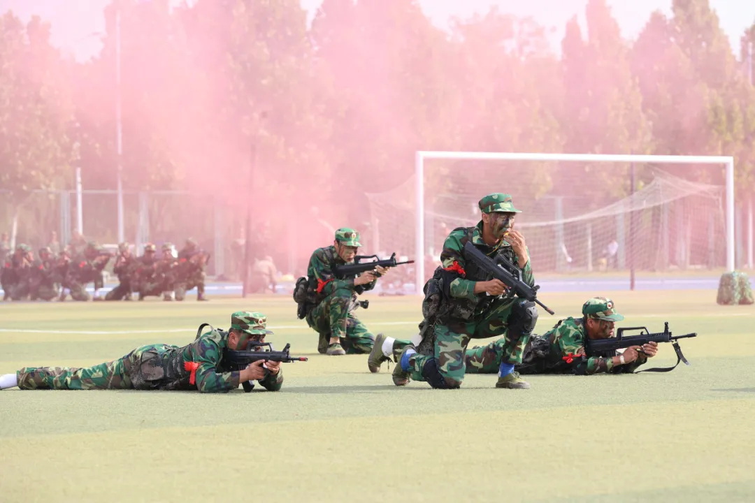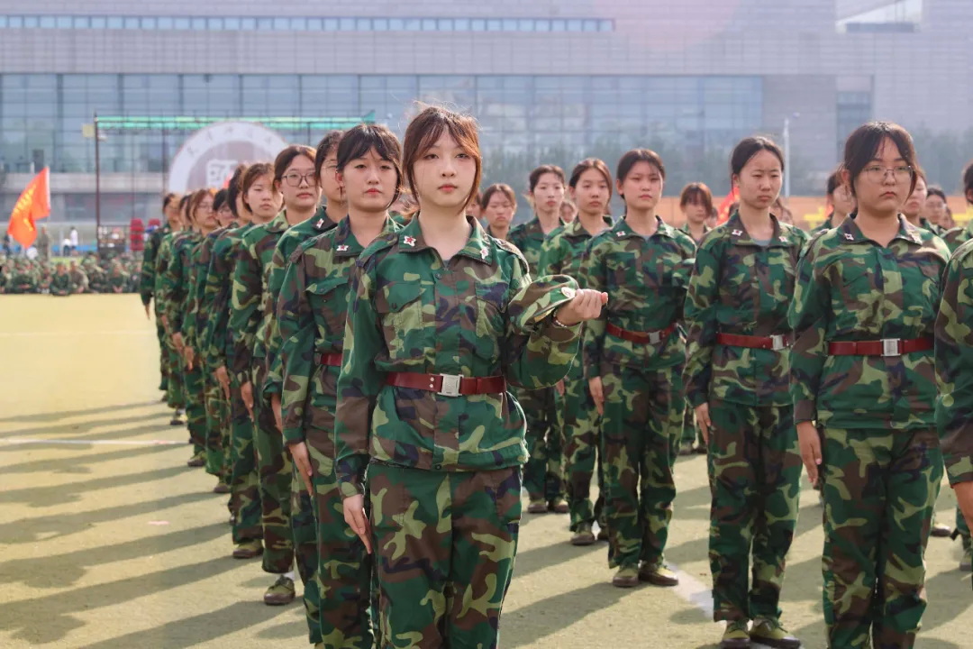 在雄壮激昂的军乐声中,军训学生们进行了分列式和军事技能汇报展示。分列式中,受阅方队整齐划一、步伐稳健、气势恢宏,展示了他们在军训中取得的丰硕成果。嘹亮的口号和坚定的目光,充分彰显了青年学生奋发向上的青春朝气。