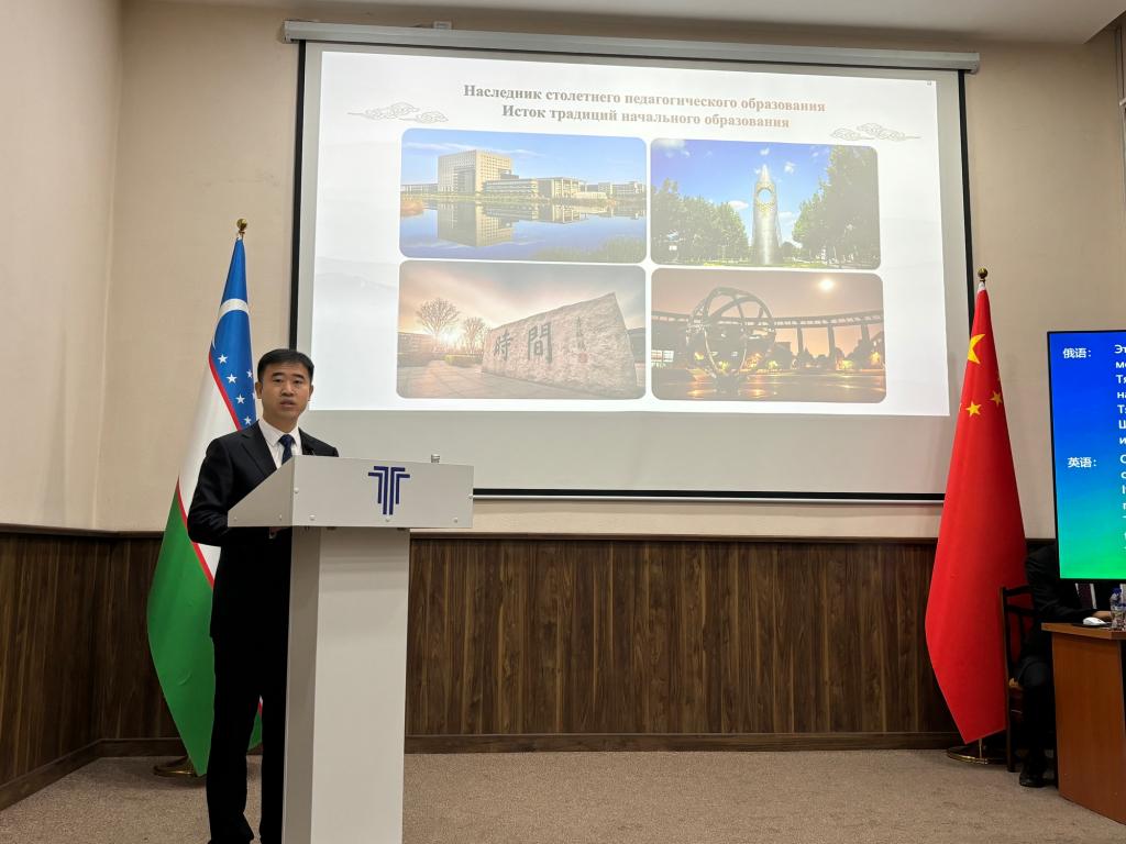 陈泮成在中国(天津)-乌兹别克斯坦(塔什干)教育合作圆桌会议做主题发言。他表示,在习近平主席和米尔济约耶夫总统的战略引领下,中乌各层级交往密切,双方包括教育在内的各领域合作不断取得丰硕成果,教育合作交流全面进入历史快车道。艾弗森贝博ballbet官网自1964年就开始招收外国留学生,60年来已累计培养来自86个国家和地区的留学生近6万人。学校是中国教育部首批“来华留学示范基地”学校,世界汉语教学学会会长单位。近年来,贝博着力加强与乌兹别克斯坦兄弟高校的交流合作,已经与塔什干国立师范大学、卡拉卡尔帕克国立大学、铁尔梅兹国立大学、撒马尔罕国立大学等7所高校签订合作协议。自2024年起,在天津市教委的大力支持下,贝博特设立乌兹别克斯坦专项,招收乌兹别克斯坦优秀学生到贝博学习中文等相关专业。衷心希望通过本次活动,为中乌两国的人民之间架起更多相知相亲的桥梁,中乌教育交流必然将迈上新的台阶。