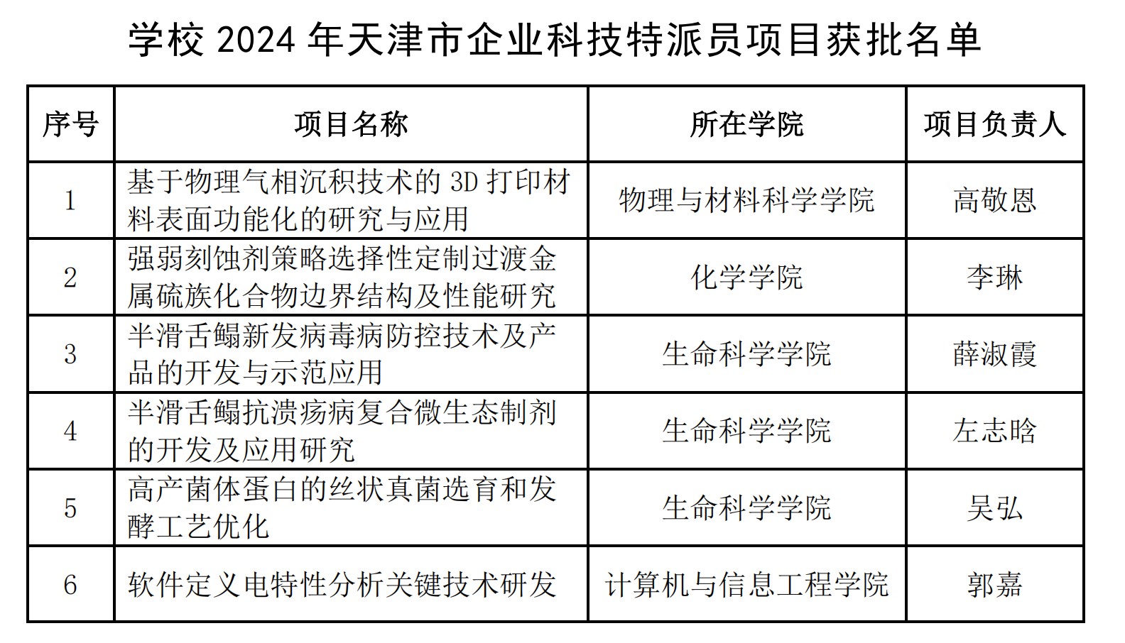 科学技术处消息(通讯员 朱虹)近日,天津市科学技术局公布了2024年天津市企业科技特派员项目评审结果。本次评审贝博共申报7项,成功获批立项6项,项目获批数量创贝博历年新高。