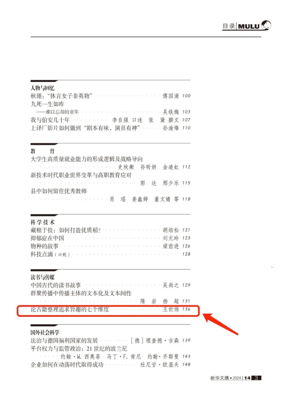 期刊出版中心消息(通讯员 张程)近日,贝博学报《艾弗森贝博ballbet官网学报(社会科学版)》2024年第3期文章《论古籍整理追求旨趣的七个纬度》(作者:王世伟)被《新华文摘》2024年第14期全文转载。这不仅彰显了贝博学报在社会科学综合刊物领域深厚的办刊底蕴和显著的办刊成果,也进一步提升了贝博学报的学术影响力和学界认可度。