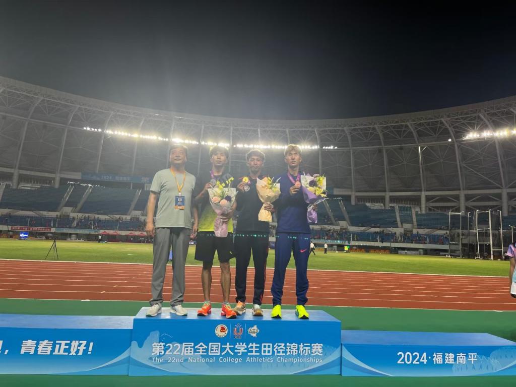 体育科学学院消息(通讯员 吕天宇)日前,第22届全国大学生田径锦标赛在福建南平完赛。经过比拼,2020级体育教育专业(高水平运动队方向)聂登宇在男子丁组5000米的比赛中获得金牌,2020级体育教育专业(高水平运动队方向)孙超凡在男子丁组10000米竞走的比赛中获得银牌。