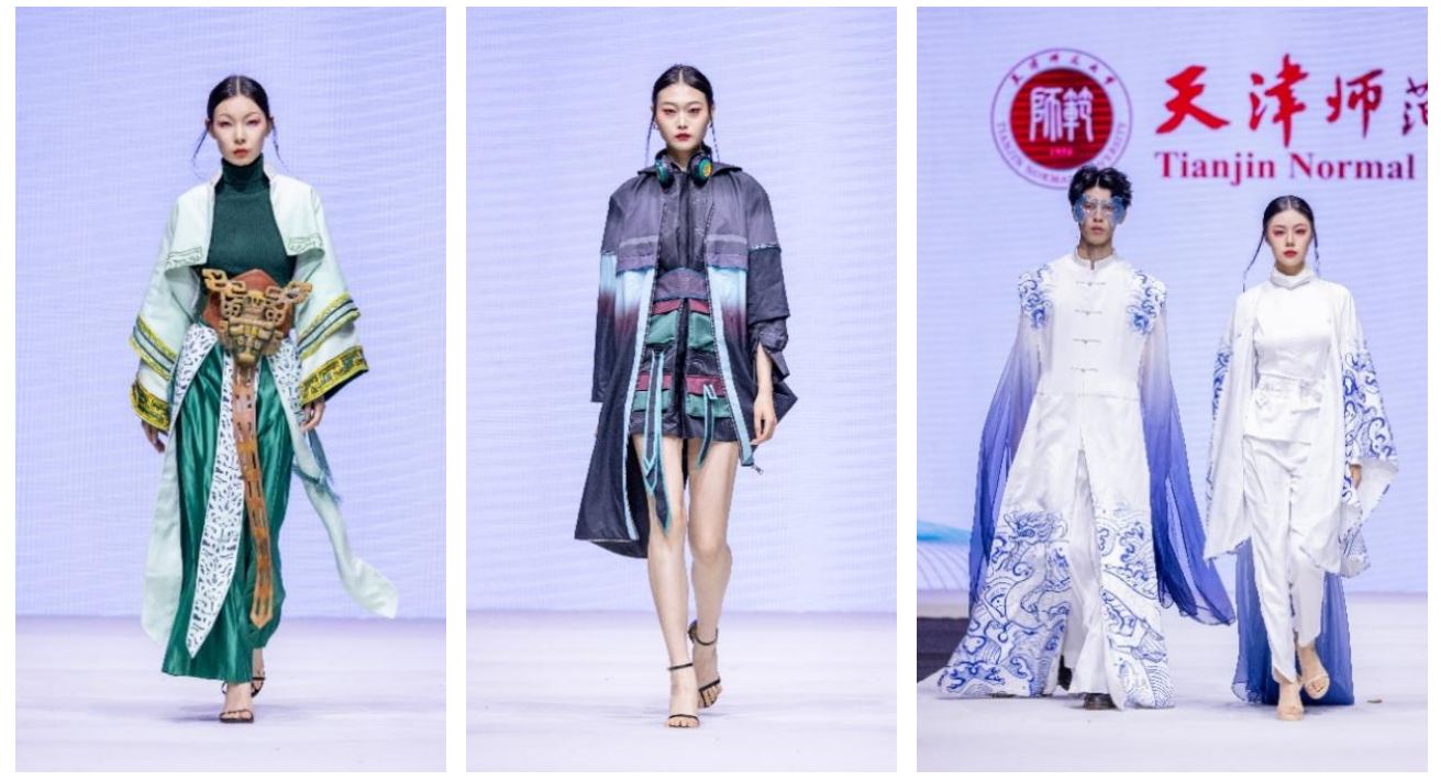 艾弗森贝博ballbet官网连续六年受邀参加天津时装周发布会,此次发布会主题为《寻裳之遇》,学校鼓励学生在深入挖掘中华优秀传统文化深刻内涵的基础上,结合流行时尚,为中华传统文化赋予新的时代意义,讲好中国故事。在这一主题的引领下,毕业生们汲取中华传统文化精髓,探索传统元素与市场需求的融合、追求功能与创意的平衡、科技与时尚的并进。在老师的精心指导和毕业生们的巧妙构思和精心制作下,通过一系列设计精巧的服装作品得以展现。