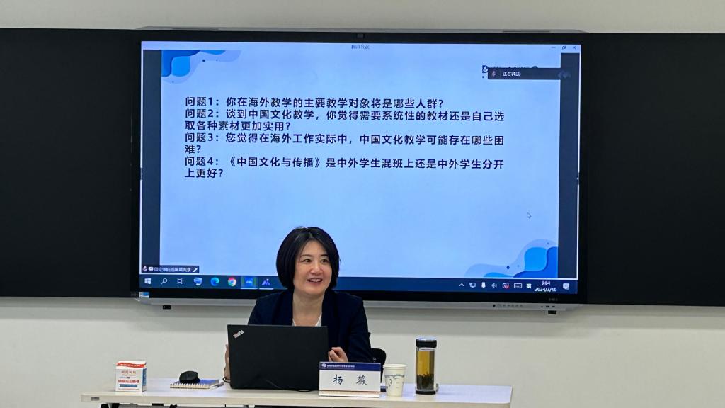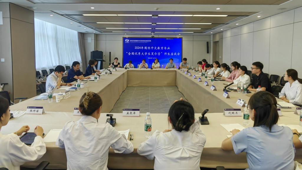 夏令营安排了课程体验与师生座谈活动。杨薇教授所做的《中华文化与传播》课程体验,着重在文化教学的内容选择、教学设计、教学资源使用等方面进行详细介绍,讲授过程幽默风趣,课堂氛围轻松愉快;陈晨教授所做的《新时代国际中文教育新使命与国际中文教师新担当》课程体验,结合个体实践经历,通过鲜活真实事例,讲述了新时代国际中文教育的新使命与国际中文教师的新担当,讲授过程中师生频频互动、共同启发、教学相长。在师生座谈环节,学员与领域专家学者就国际中文教育的热点问题、学习研究方法、职业规划等话题进行了深入的交流探讨,学员们得到了针对性的建议指导,进一步坚定了自己投身国际中文教育事业的决心与信心。