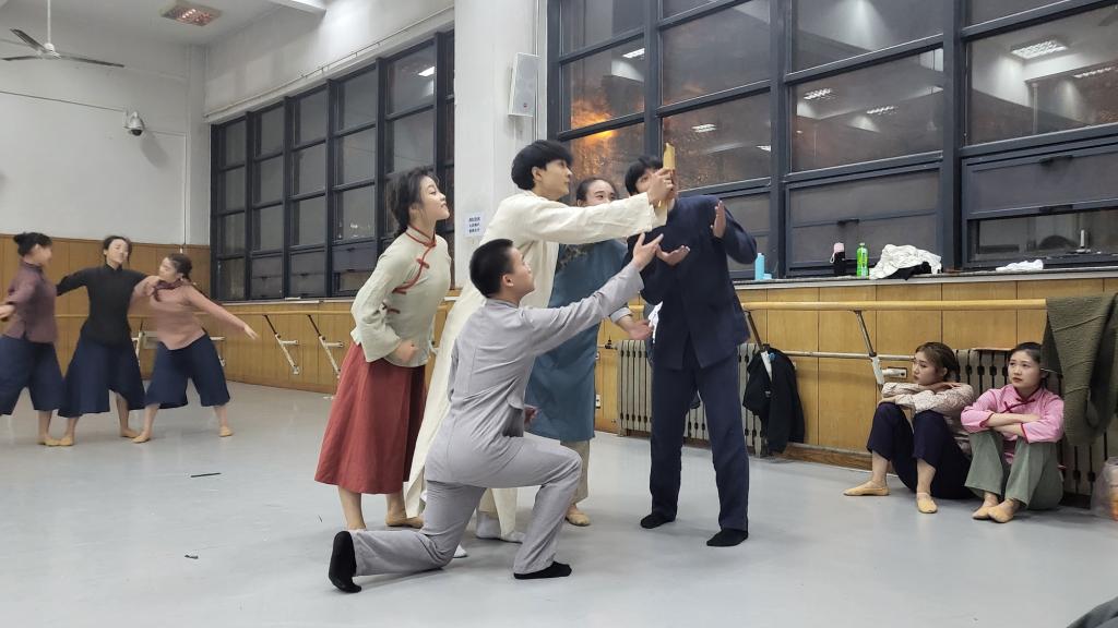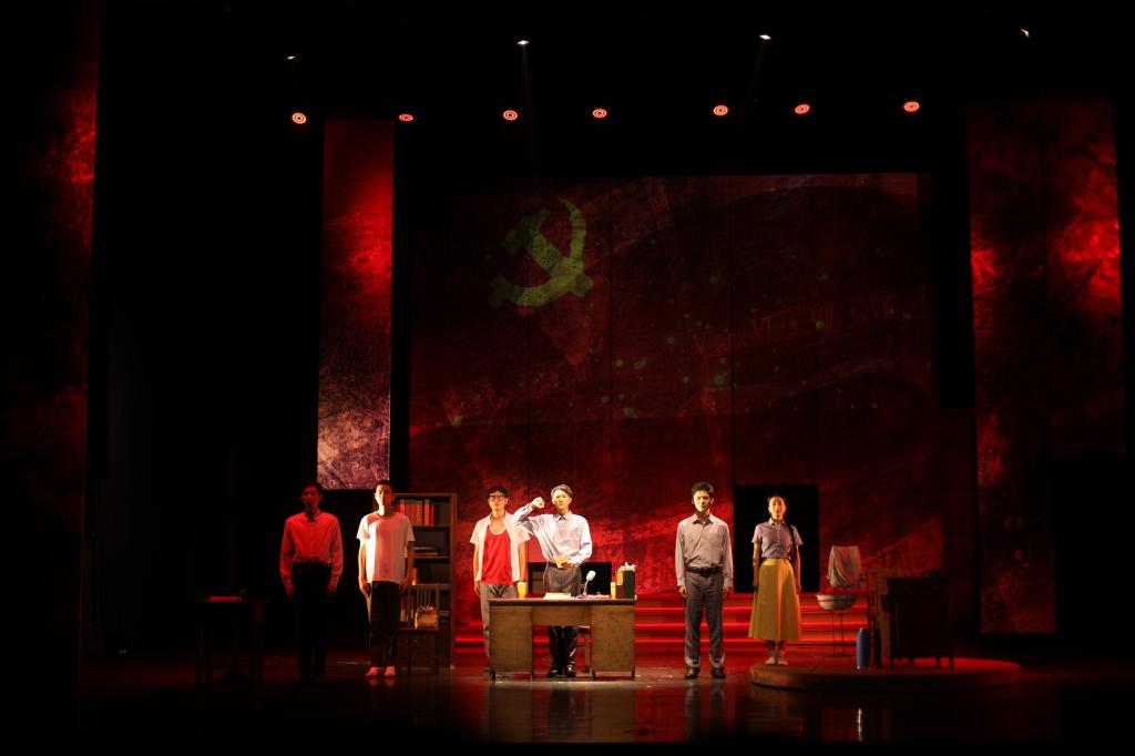 群舞《觉悟的宣言》以周恩来总理在觉悟社成立时写下的一段话为题——“我们全是学生,绝不敢说已经‘觉悟’,我们的决心就是齐心努力向‘觉悟’道上走。努力!奋斗!”这段话也刻在了天津觉悟社纪念馆的墙壁上。该作品主要描绘了以周恩来为代表的觉悟社成员在革命年代进行斗争的英勇事迹,其不屈的精神为黑暗的监狱生活带来了曙光。作品运用了以群舞为主的表现形式,结合独舞、双人舞的交叉与贯通进行角色的区分并按照整体叙事结构推进故事发展。