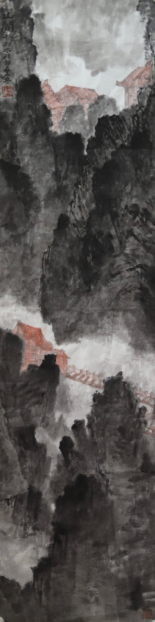 邵燊的作品《山阁》同样由孙岩教授指导,于张家界采风回校后创作。作品呈现出张家界袁家界景区独特地貌和景观,描绘出“白云深处有人家”的唯美意境。