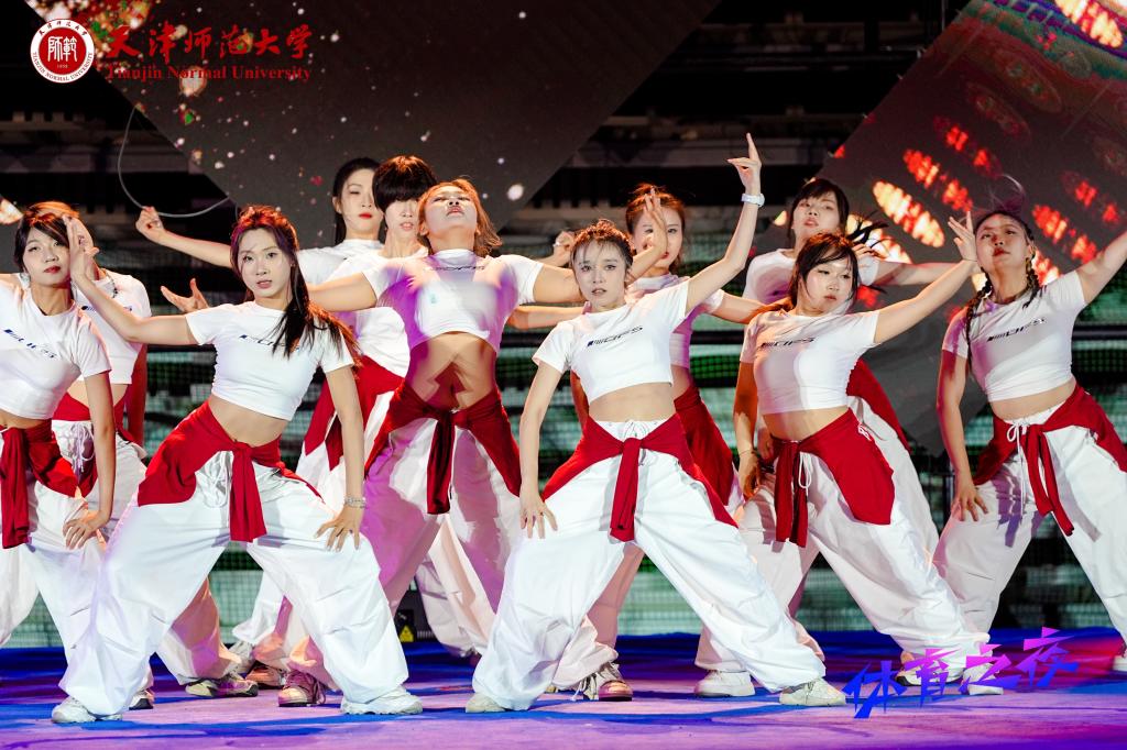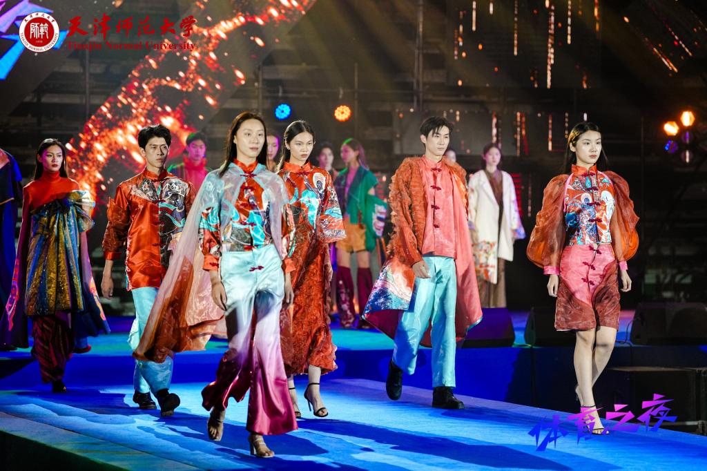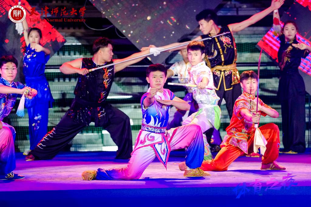 活动在闪耀的灯光秀表演中开场,《扬“幡”起航》《精武英豪》《旗舞飞扬》……舞台上,一个个节目接连登场,既有传统体育项目、朝气蓬勃的健美体操、充满智慧的体育科技,也有中华传统文化元素的服装秀展演等内容,学子们尽情展现自己的艺术才华。舞台下,观众热情似火,掌声和喝彩声不断,大家时不时拿出手机记录精彩表演瞬间。