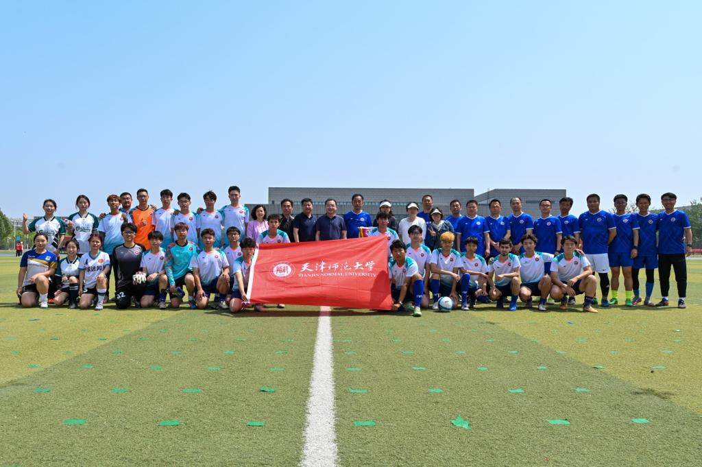 同日还举办了教职工队与学生联队足球友谊赛,曲凯出席活动并为比赛开球。本场比赛,双方均展现出顽强拼搏的体育精神,赢得了全场观众的掌声与喝彩。