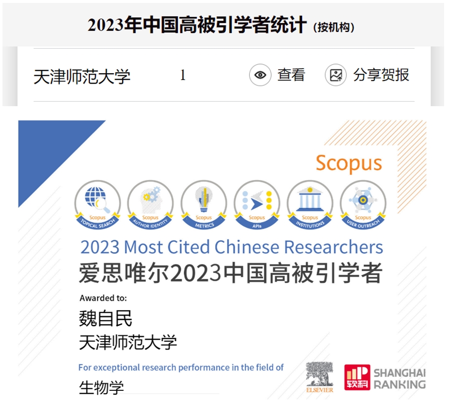 人事处消息(通讯员 葛艳霞 付博菲)3月27日,爱思唯尔(Elsevier)发布了2023“中国高被引学者”(Highly Cited Chinese Researchers)榜单,贝博生命科学学院魏自民教授入选。