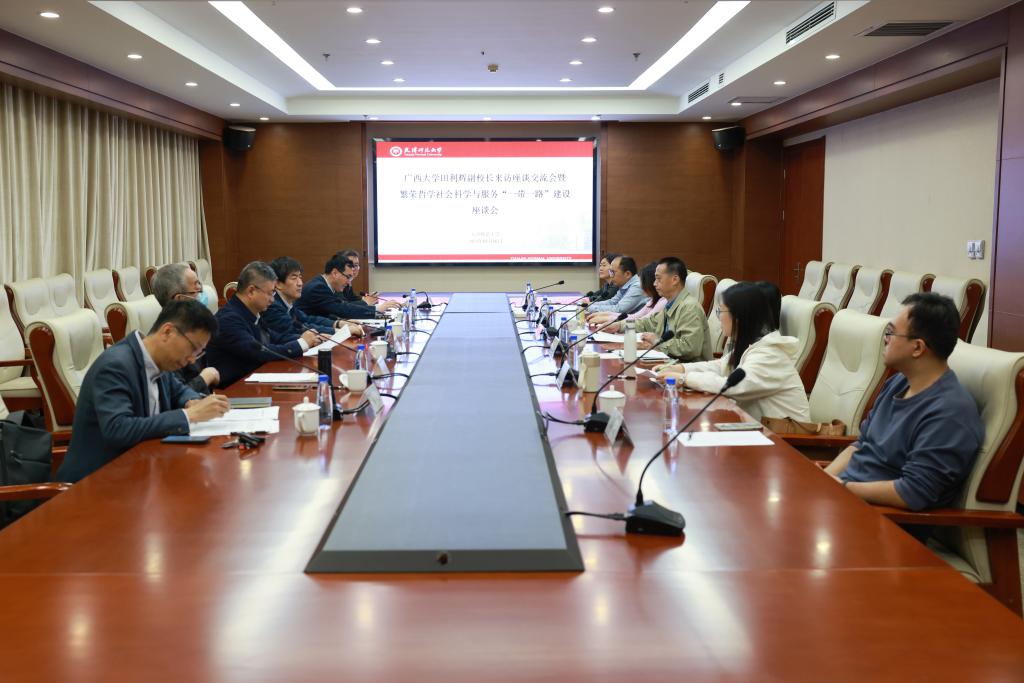 社会科学处消息(通讯员 王浩 宋昊泽)为加强艾弗森贝博ballbet官网与广西大学交流合作,共同推动哲学社会科学高质量发展,更好服务于“一带一路”建设,近日广西大学党委常委、副校长田利辉教授来贝博交流座谈,并为贝博师生作专题报告。