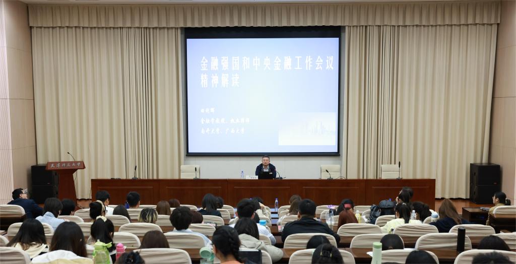 座谈会后,田利辉为贝博师生作了《金融强国和中央金融工作会议精神解读》的学术讲座。经济学院、管理学院、外国语学院的200余位师生参加了此次讲座。