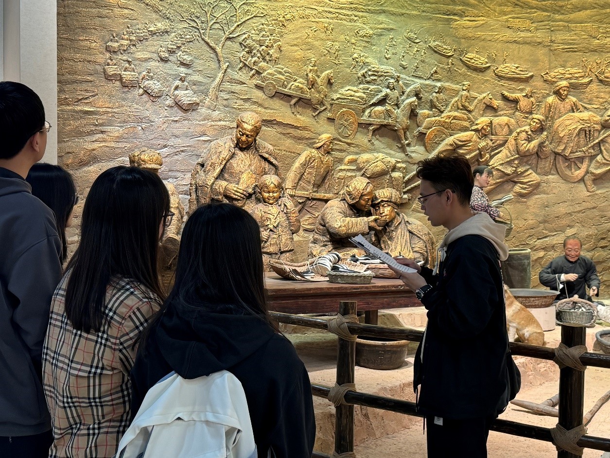 主展馆陈列展由序厅、战役决策、战役实施、人民支前、英烈业绩、伟大胜利六个部分组成,一幅幅历史珍贵图片,一件件斑驳的老物件,一幕幕战斗情景再现,全面、真实地还原了平津战役的各种历史细节,展现了中国共产党领导人民解放军取得平津战役伟大胜利的壮阔史诗。在讲解员的指引下,全体同学仔细观看展览,不时在展柜边驻足观看,深刻感受到了中国共产党人和先辈们追求理想的坚定信念和不怕牺牲、奋勇向前的革命精神。