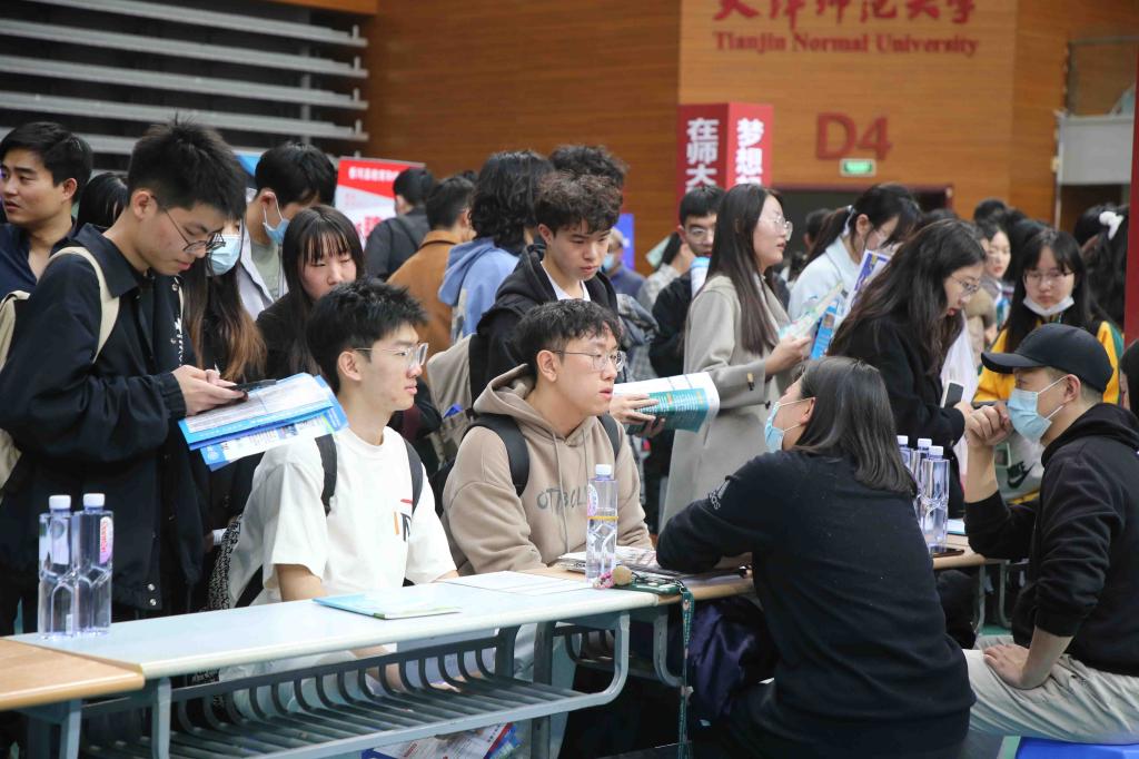 招聘会现场设置了政策服务宣传区、就业指导咨询区、考研留学指导区三大就业赋能专区,由优秀校友就业导师、职业指导导师、生涯发展咨询室的专业咨询师为毕业生提供针对性咨询服务,助推毕业生顺利踏上职场之路。“通过这些就业赋能专区,我了解到许多毕业生留津就业的利好政策,让我更有信心留在天津发展。希望未来能充分发挥自己的双语优势,在就业岗位上发光发热。”师大外国语学院2024届毕业生刘汝月说。