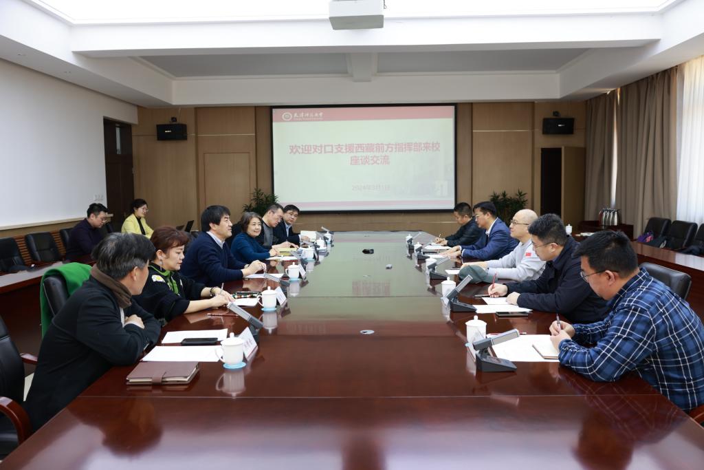 继续教育学院消息(通讯员 周博)3月1日,天津市对口支援西藏前方指挥部总指挥、西藏昌都市委副书记、常务副市长张建华一行来校调研座谈。校党委书记曲凯在办公楼贵宾厅会见来宾,校党委常委、副校长佟德志参加会见。