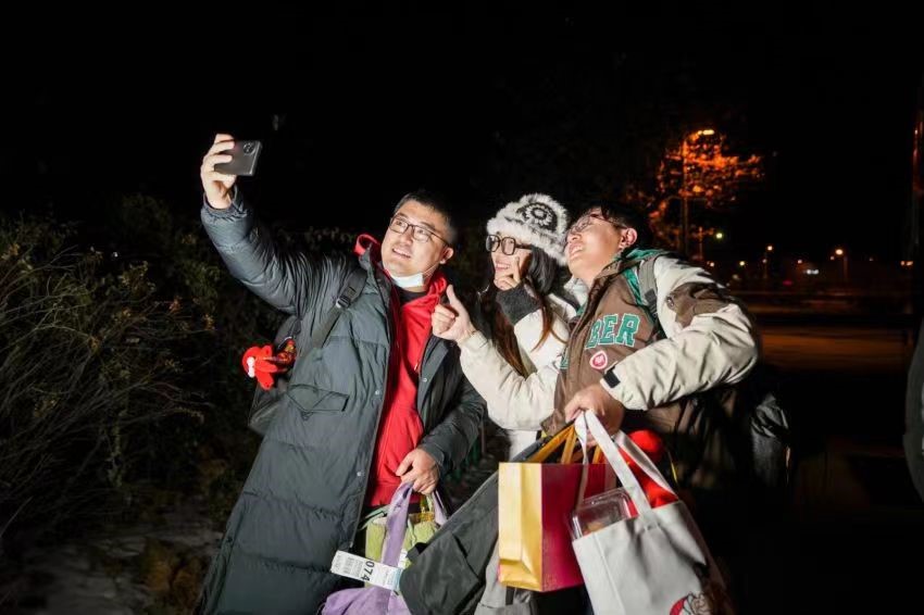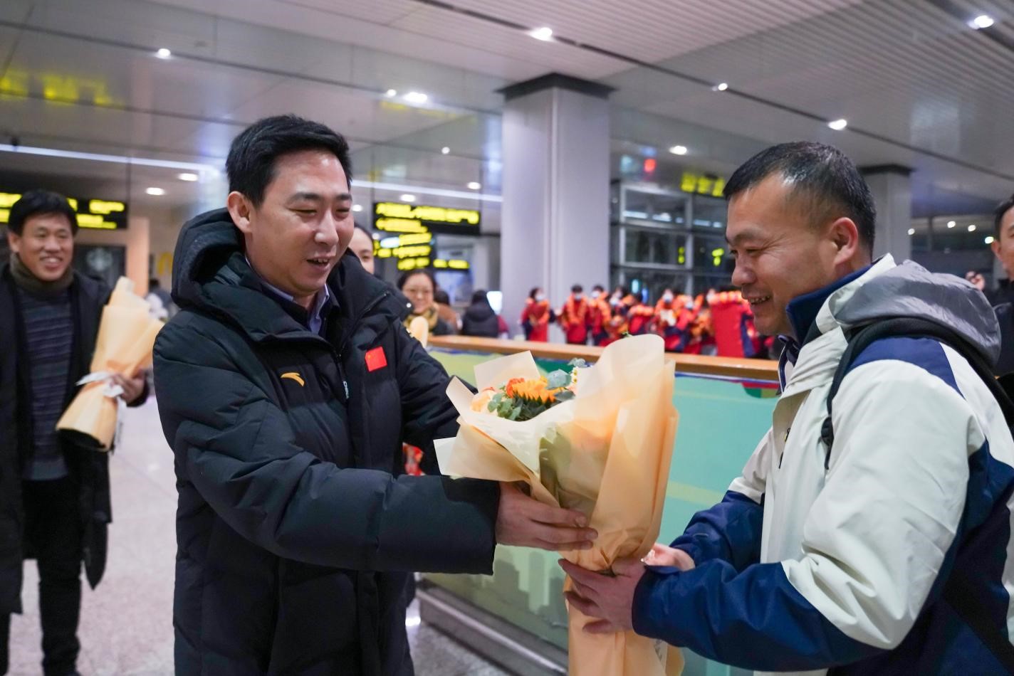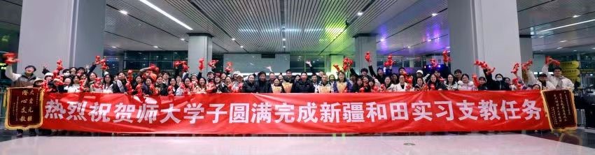 党委学工部消息(通讯员 杨晨)2023年12月31日凌晨,贝博2023年秋季学期援疆实习支教团60余名师生在圆满完成为期三个半月的实习支教任务后,从新疆和田地区载誉而归。校党委常委、副校长陈玳玮前往机场迎接实习支教学生,学校党委学生工作部、继续教育学院负责同志及相关工作人员随同迎接。