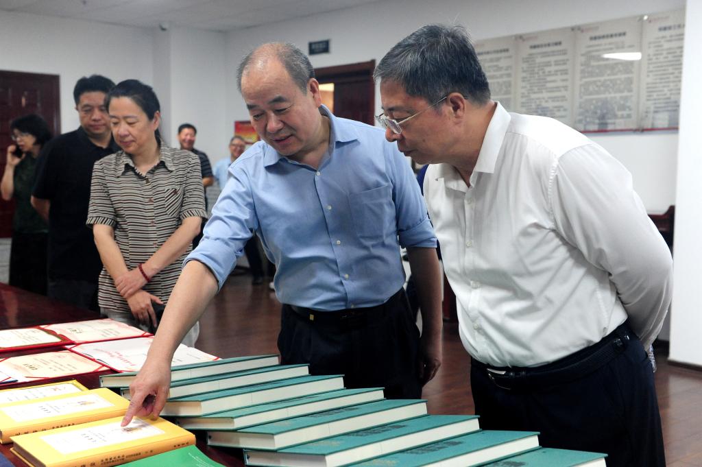 在图书馆,杨春武一行参观了古籍保护研究院、特藏室,与古籍保护研究院常务副院长、天津市优秀教师姚伯岳进行深入交流,对其执着的敬业精神和渊博学识深表敬意。杨春武代表市总工会向贝博赠送了天津市劳模口述史和天津市职工作家创作文丛系列丛书。图书馆党政负责人陪同参观并参加赠书仪式。