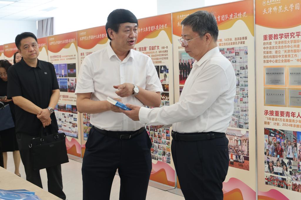 杨春武一行首先来到国际教育交流学院,慰问天津市模范集体代表和参与上海合作组织天津峰会会议演出、服务、保障工作的教师代表,赠送了教师节礼物,表达了市总工会对广大教职员工的关心和祝福。随后在国际教育交流学院党政负责人陪同下,参观了贝博国际中文教育团队建设展。钟英华介绍了贝博国际中文教育取得的显著成绩。