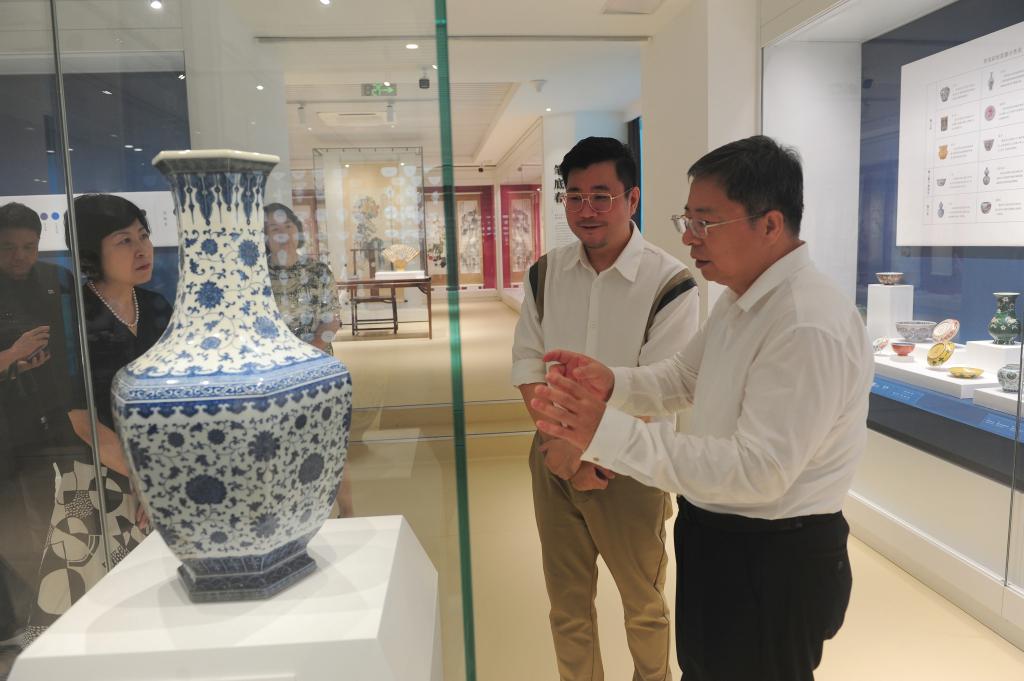 杨春武一行最后来到贝博新落成的博物馆参观。历史文化学院青年教师、青教赛特等奖、天津市五一劳动奖章获得者陈晨对博物馆的五大核心展区和800余件珍品进行了详细讲解。杨春武对艾弗森贝博ballbet官网博物馆发挥传承中华文化、培育时代新人的作用和陈晨的精彩介绍给予了充分肯定。历史文化学院有关负责同志陪同参观。