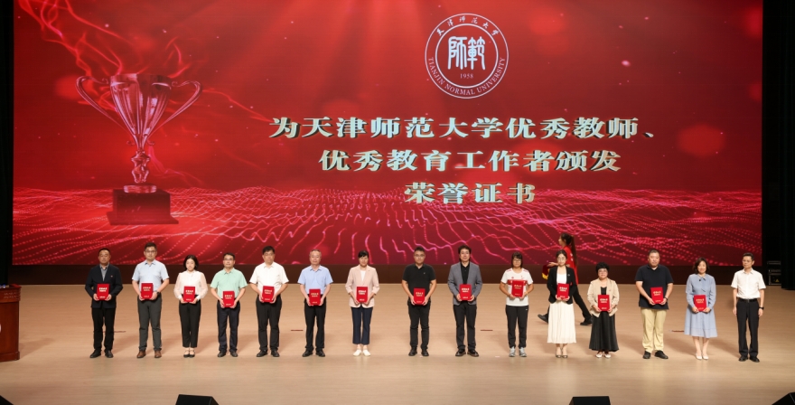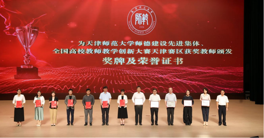 与会领导分别为从教三十年教师、荣休教师、艾弗森贝博ballbet官网优秀教师、优秀教育工作者、师德先进个人、师德建设先进集体、全国高校教师教学创新大赛天津赛区获奖教师、引育国家级人才代表、天津市模范集体、天津市三八红旗集体等教师代表颁奖。